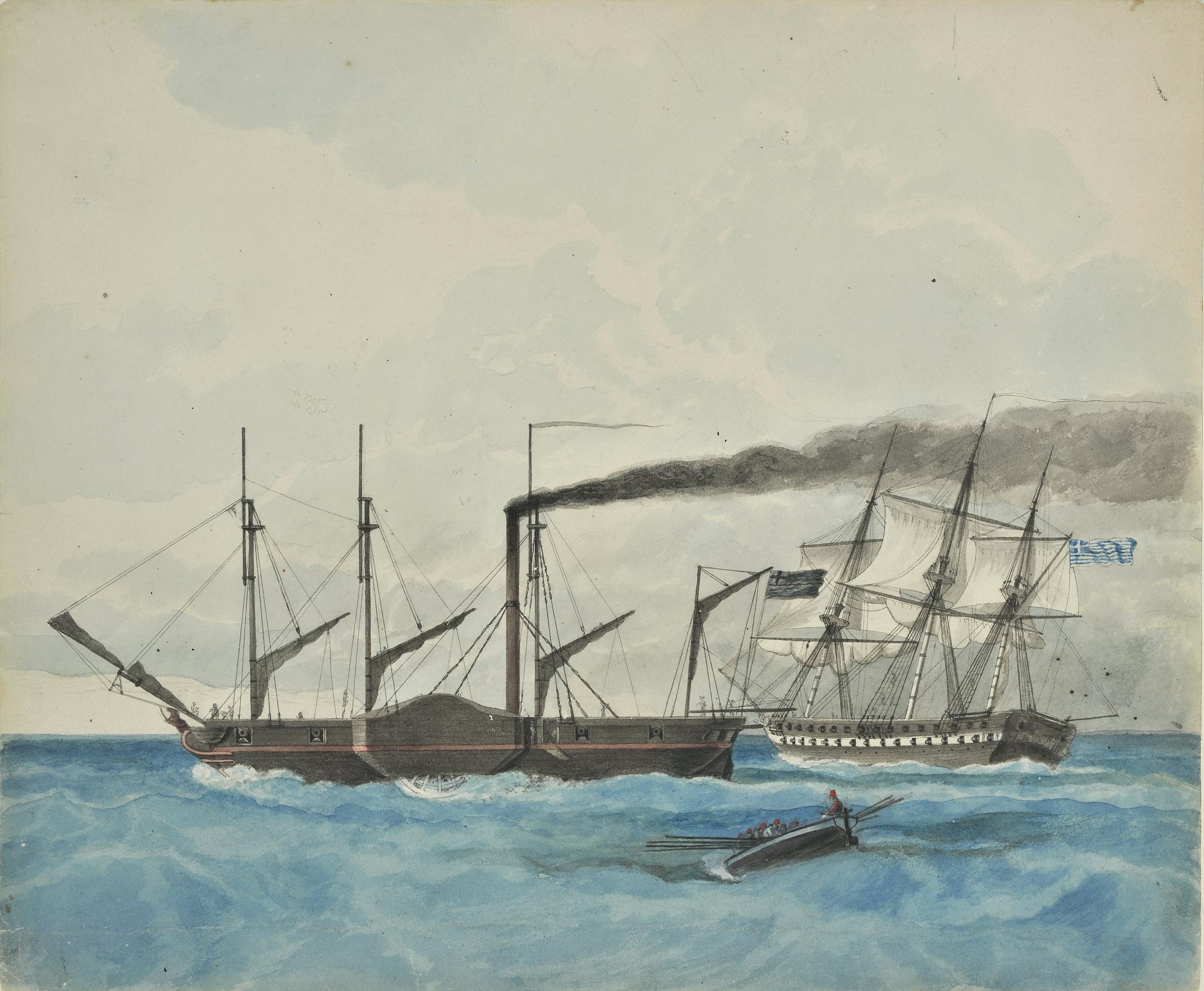 Κατά την ενδεκάτην Απριλλίου εισήλθεν εις τον Πειραιά ο Ναύαρχος Ανδρέας Μιαούλης με τρία πολεμικά πλοία φέρων μεθ’ εαυτού τον Αρχιναύαρχον Κόγχραν, και τον Αρχιστράτηγον της στερεάς Ρικάρδον Τσιούρζ, αμφότεροι το γένος Βρετανοί.